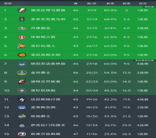 西部最新积分榜